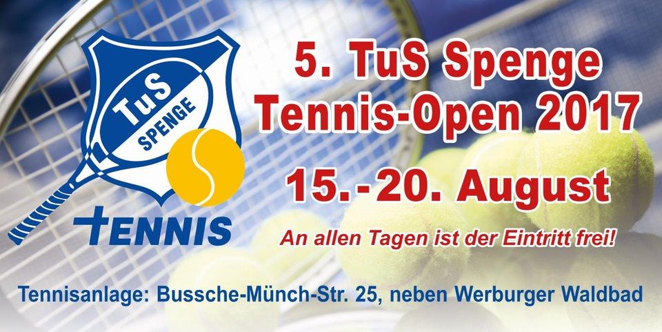 Die 5. TuS Spenge Tennis-Open 2017 finden vom 15.08. bis 20.08.2017 statt.